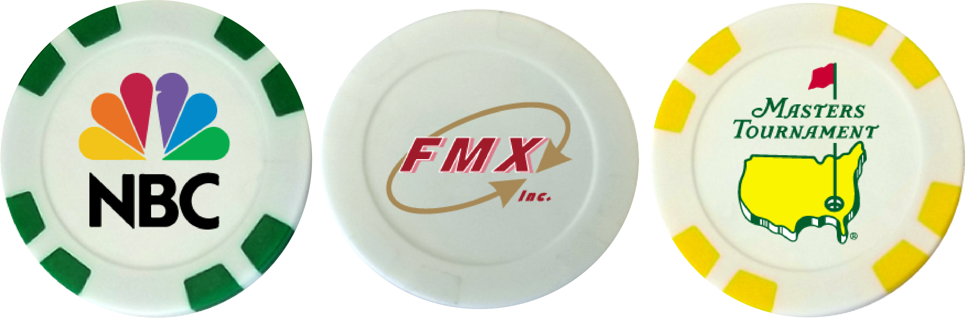 | Set-Up Charge: $40 (G) Chip Colors: Yellow/White, Green/White, & Solid White Imprint area: 1-1/16" Diameter Product Weight /Size: 11.5 Grams / 1-9/16" diameter x 1/8" thick |
