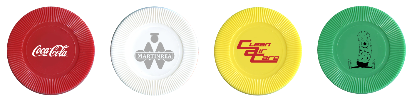 Tokens of differing colors but same design may be assorted in increments of 100 pieces only, for better quantity pricing.