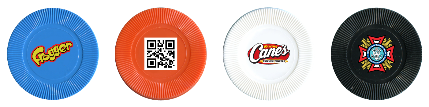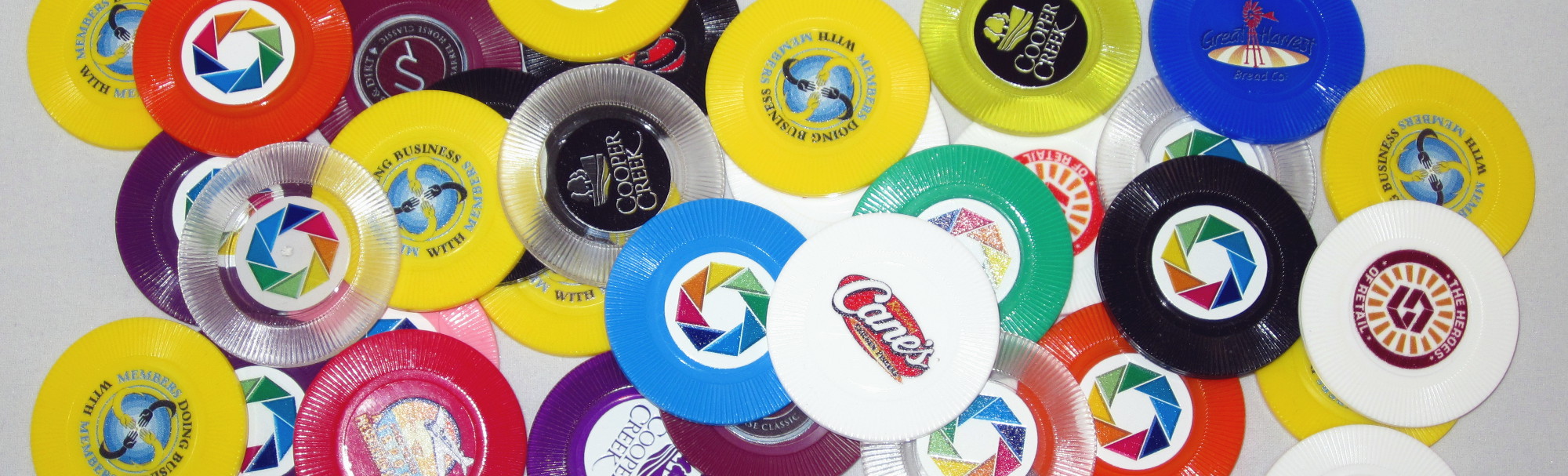 Tokens of differing colors, but same design, may be assorted in increments of 100 pieces only, for better quantity pricing.